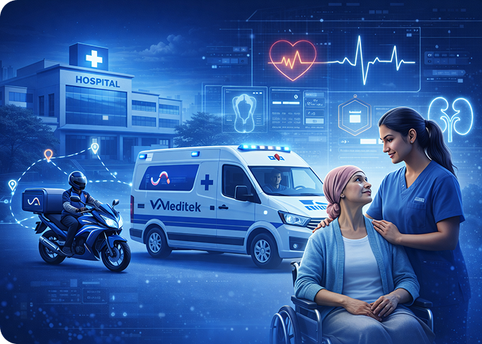 Established on December 9, 2022, VA MEDITEK PVT LTD set out to transform global healthcare-delivering advanced technology platforms for Cancer Care, Cardiology, Kidney Care, and Emergency Medical Transport.