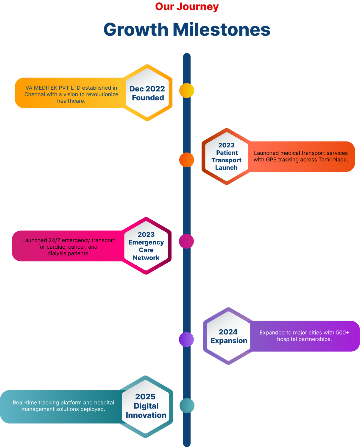 Established on December 9, 2022, VA MEDITEK PVT LTD set out to transform global healthcare-delivering advanced technology platforms for Cancer Care, Cardiology, Kidney Care, and Emergency Medical Transport.